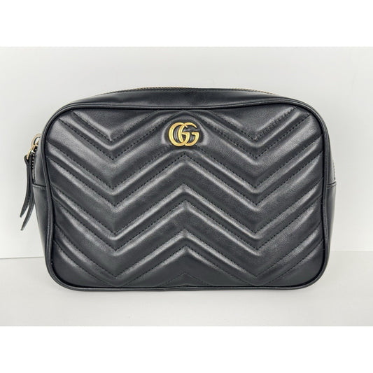 GUCCI Calfskin Matelasse Mens GG Marmont Belt Bag 80 32 Black C-2