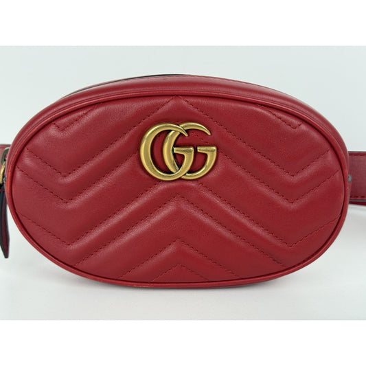 Gucci Marmont Red Leather Interlocking G Oval Belt Bag 75/30
