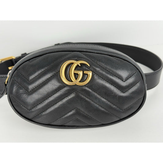 Gucci Matelassé Monochrome Small GG Marmont Chain Shoulder Bag Black B-9