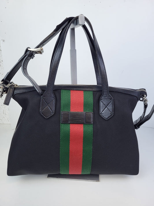 Gucci Nylon Web Top Handle Shoulder Bag Black