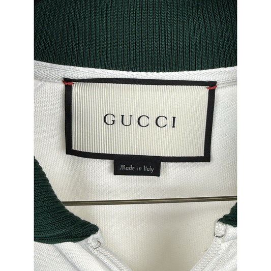 Gucci Men’s White Bomber Jacket with Green and Red Trim, Size S