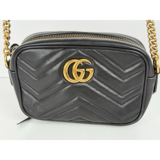 Gucci Marmont GG Black Leather Small Camera Women's Crossbody Bag
