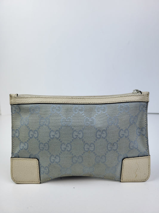 Gucci Ophidia Baby Blue White Leather Small Zip Top Pouch