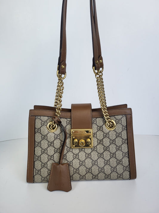 Gucci Padlock Small Brown Leather/Beige GG Canvas Shoulder Bag