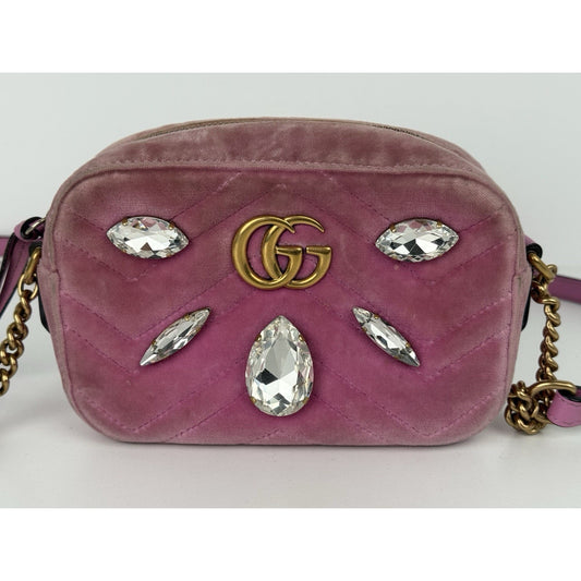 GUCCI Shoulder Bag GG Marmont Velvet Quilted Velour Pink