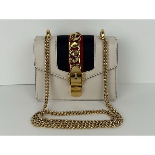 Gucci Sylvie White Leather Shoulder Bag with Gold Chain Detail