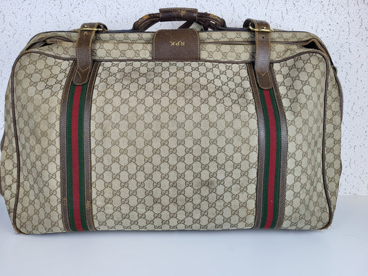 Gucci Vintage Travel Bag Suitcase Monogram Brown Canvas