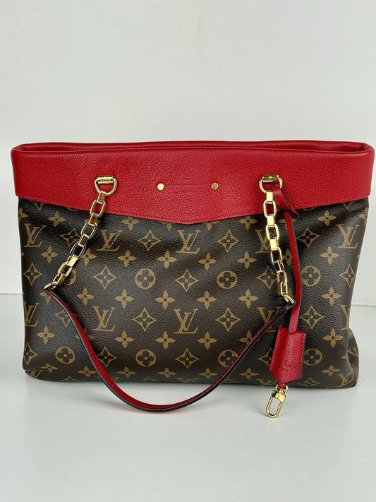 Louis Vuitton Bag Pallas Shopper Monogram Tote Brown/Red Canvas Leather