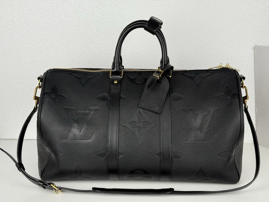 LOUIS VUITTON Bandouliere 45 Monogram Empriente Giant Black Leather Travel Bag