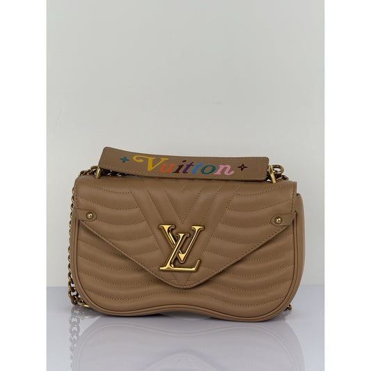 LOUIS VUITTON Beige Leather New Wave Chain Strap MM Noisette Shoulder Bag