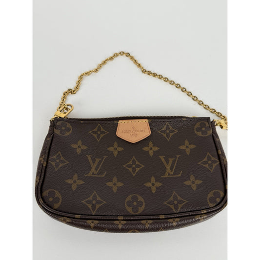 LOUIS VUITTON Multi Pochette Accessoires Brown Canvas Pink Strap Shoulder Bag