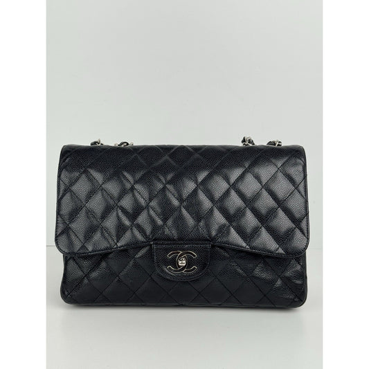 Chanel Jumbo Classic Single Flap Bag in Black Caviar Leather w Silver HardwareRegular price $3,500.00 USDRegular priceUnit price / per