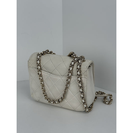 CHANEL White Lambskin Quilted Studded Beauty Begins Flap Shoulder Bag