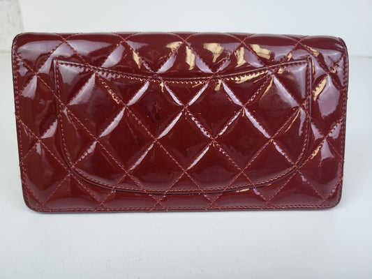 Chanel Wallet Interlocking CC Logo Patent Leather Continental Red