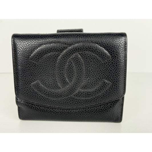 Chanel Vintage Timeless CC Compact Black Caviar Leather Women's Wallet