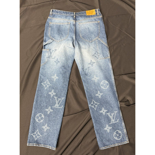 Louis Vuitton Monogram Denim Workwear Pants for Men in 34 Size