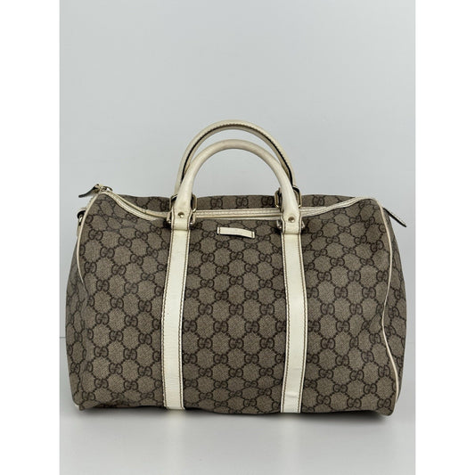 Gucci GG Supreme Medium Joy Boston Bag Brown Canvas White Leather Trim