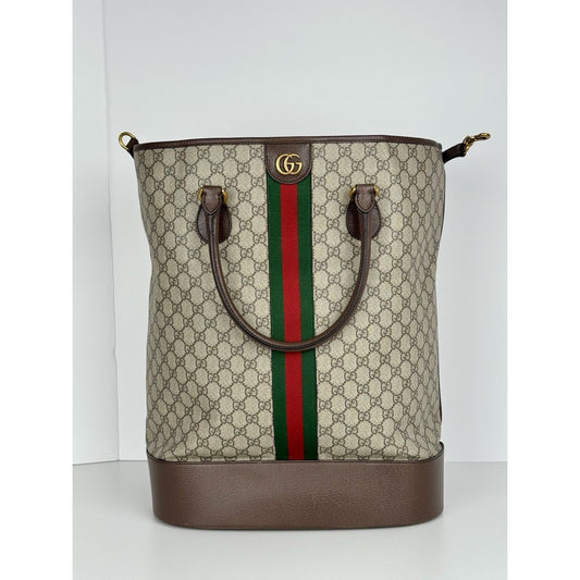 Gucci Ophidia Savoy Web Striped Vertical Tote GG Supreme Canvas