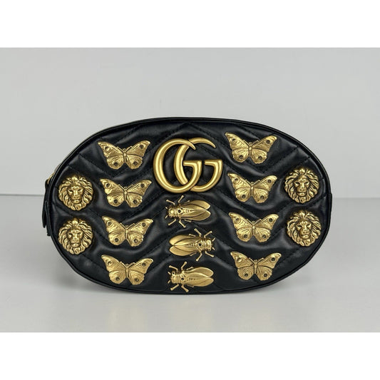 Gucci GG Marmont Animal Studs Belt Bag in Black Leather B-1