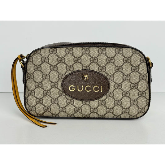 Gucci Tiger Head Camera Crossbody Bag Brown Canvas