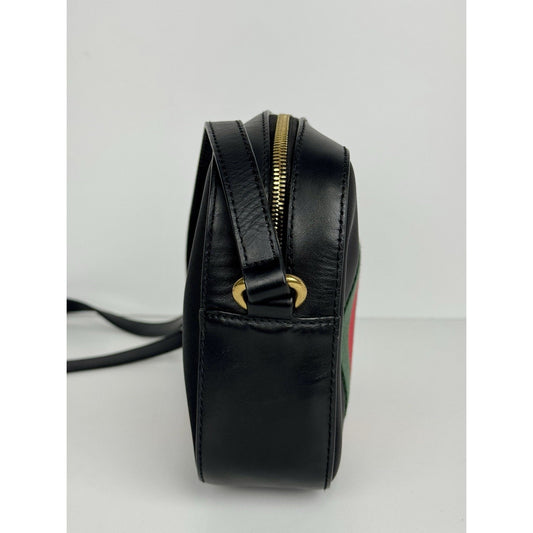 Gucci Webby Bee Black Canvas Crossbody Bag With Green Red Stripe D-1
