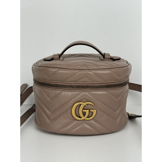 Gucci GG Marmont Mini Backpack Pink Grey Leather Gold Hardware