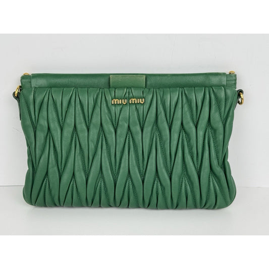 Miu Miu Green Matelasse Leather Clutch Bag Gold Hardware
