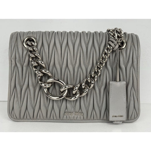 Miu Miu Nappa Matelassé Flap Crossbody Bag Grey B-6