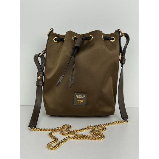 Tom Ford Small Disco Bucket Bag Nylon Khaki Green with Gold Hardware