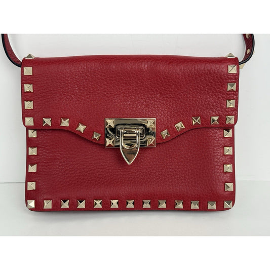 Valentino Garavani Calfskin Rockstud Shoulder Handbag Tote Red