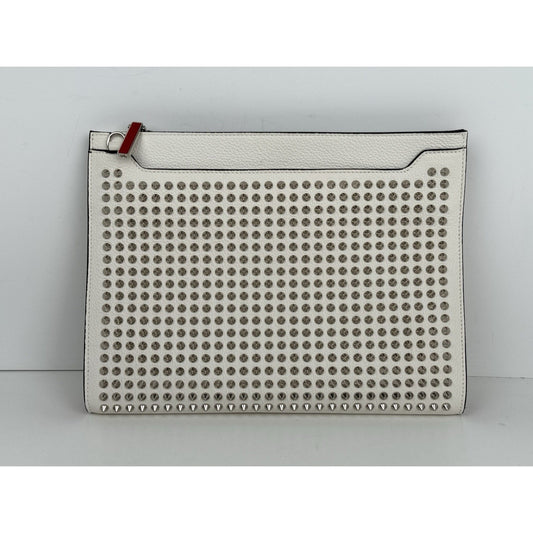 Christian Louboutin White Sky Pouch Clutch with Spike Studs and Silver Hardware