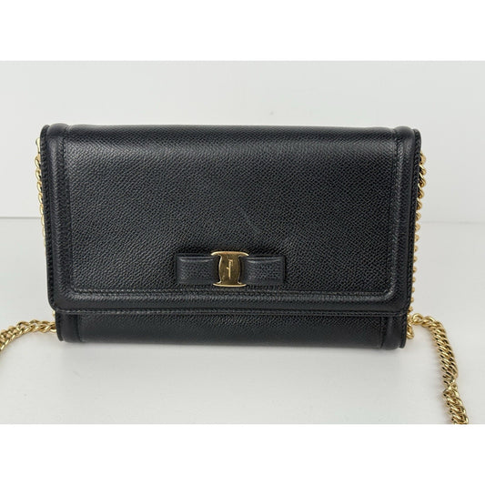 Salvatore Ferragamo Vala Ribbon Shoulder Bag Leather Black