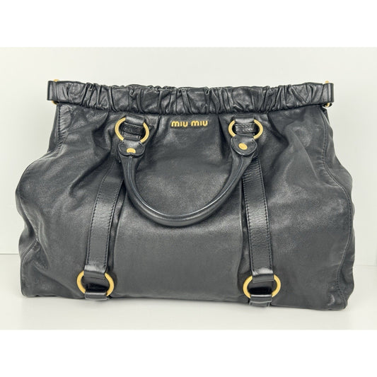 Miu Miu Vitello Lux Shoulder Bag Black Leather with Gold Hardware C-6
