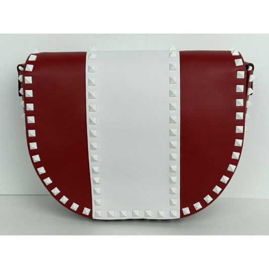 VALENTINO Red White Leather Rockstud Saddle Crossbody Bag
