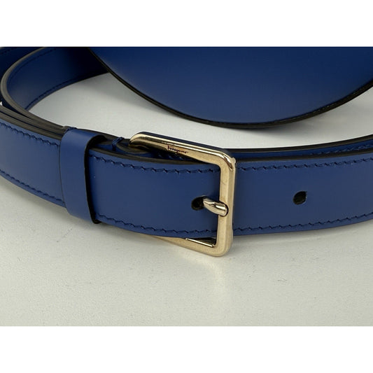 Salvatore Ferragamo Studio Round Bag Blue Leather with Gold Hardware