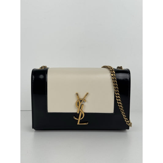 Saint Laurent Kate Small Black and White Chain Bag with Gold Hardware