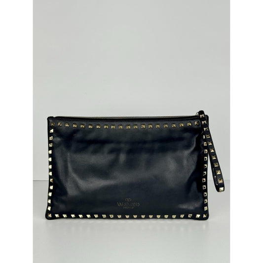 Valentino Rockstud Black Leather Pouch with Golden Hardware B-1