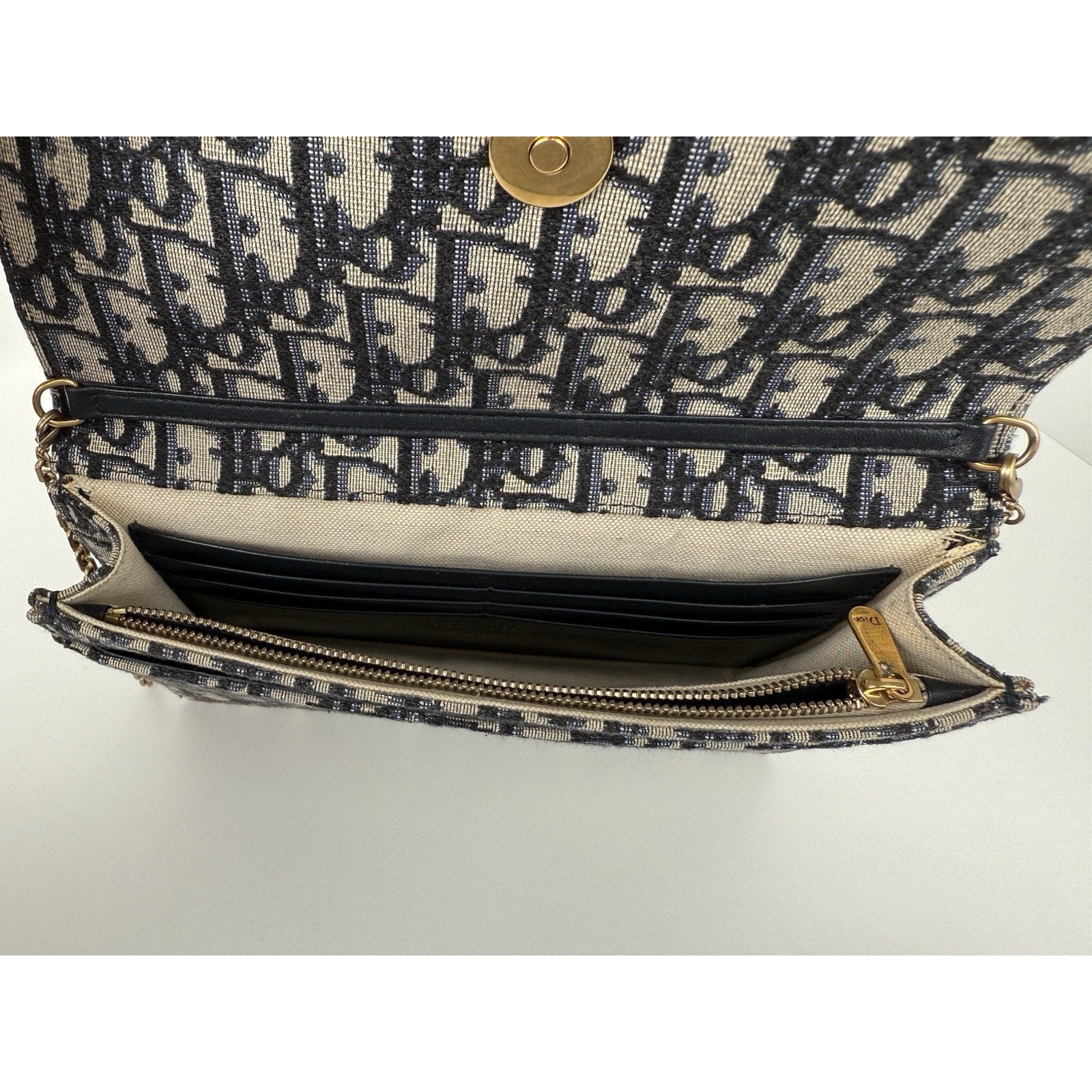 * Exterior: Blue Dior Oblique jacquard canvas with leather trim