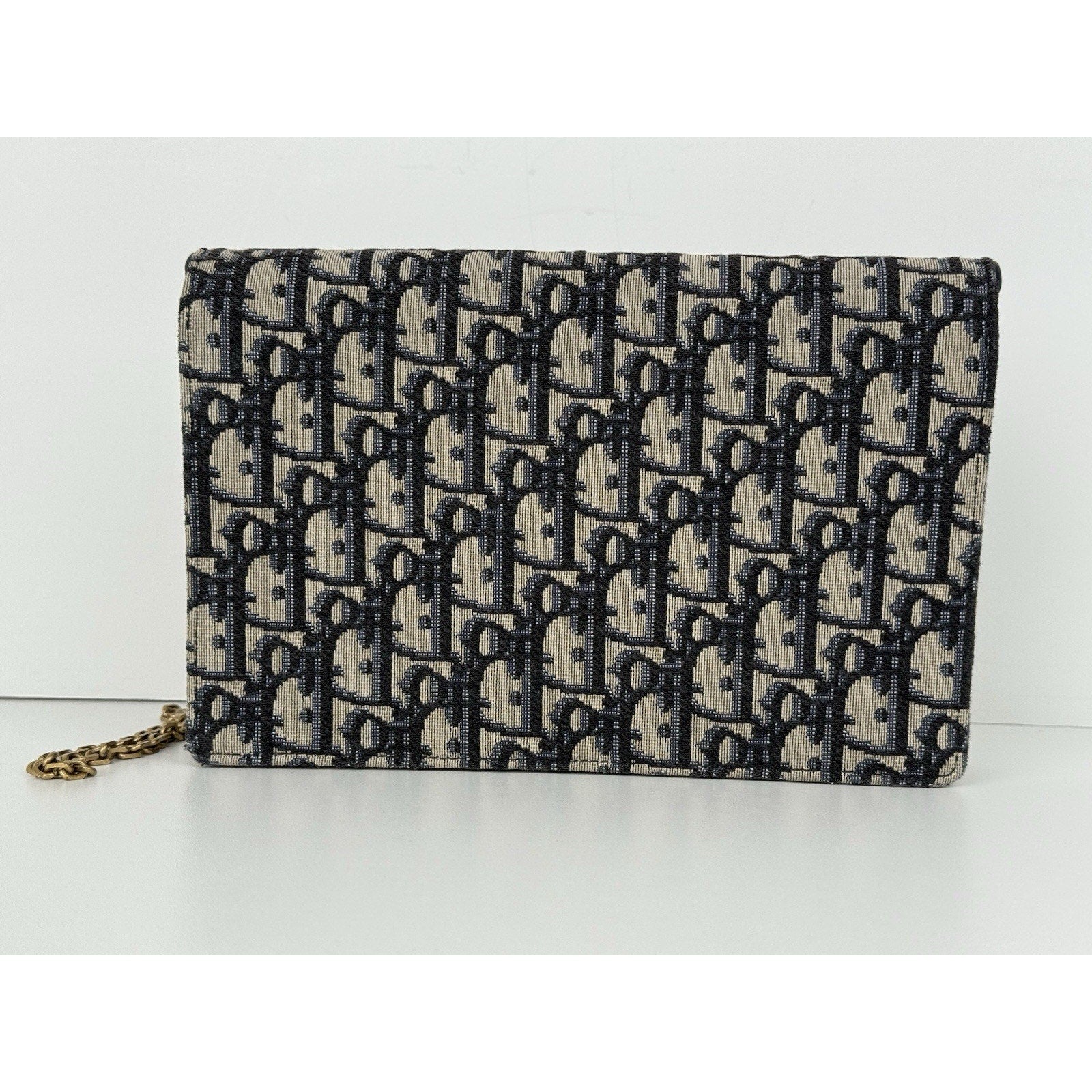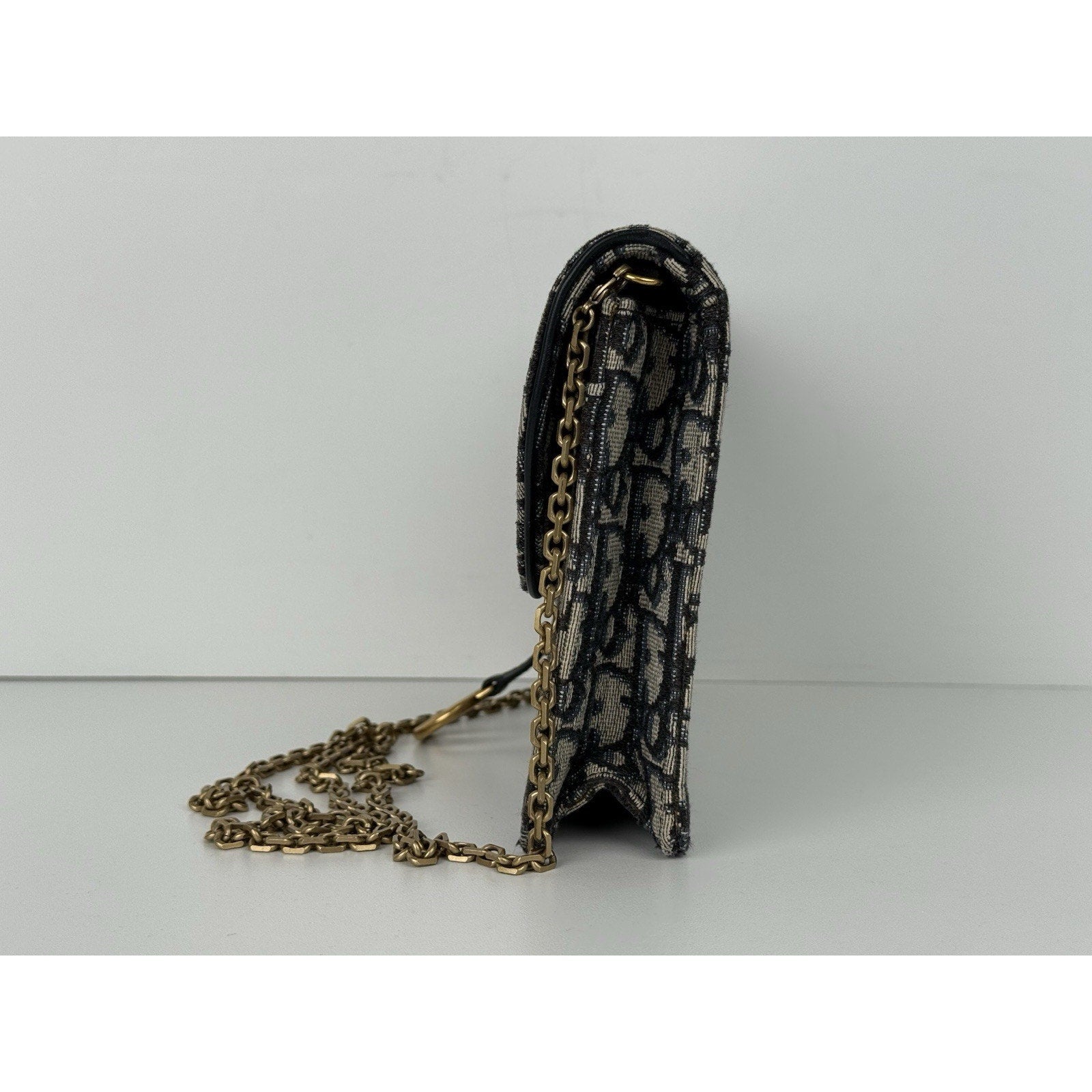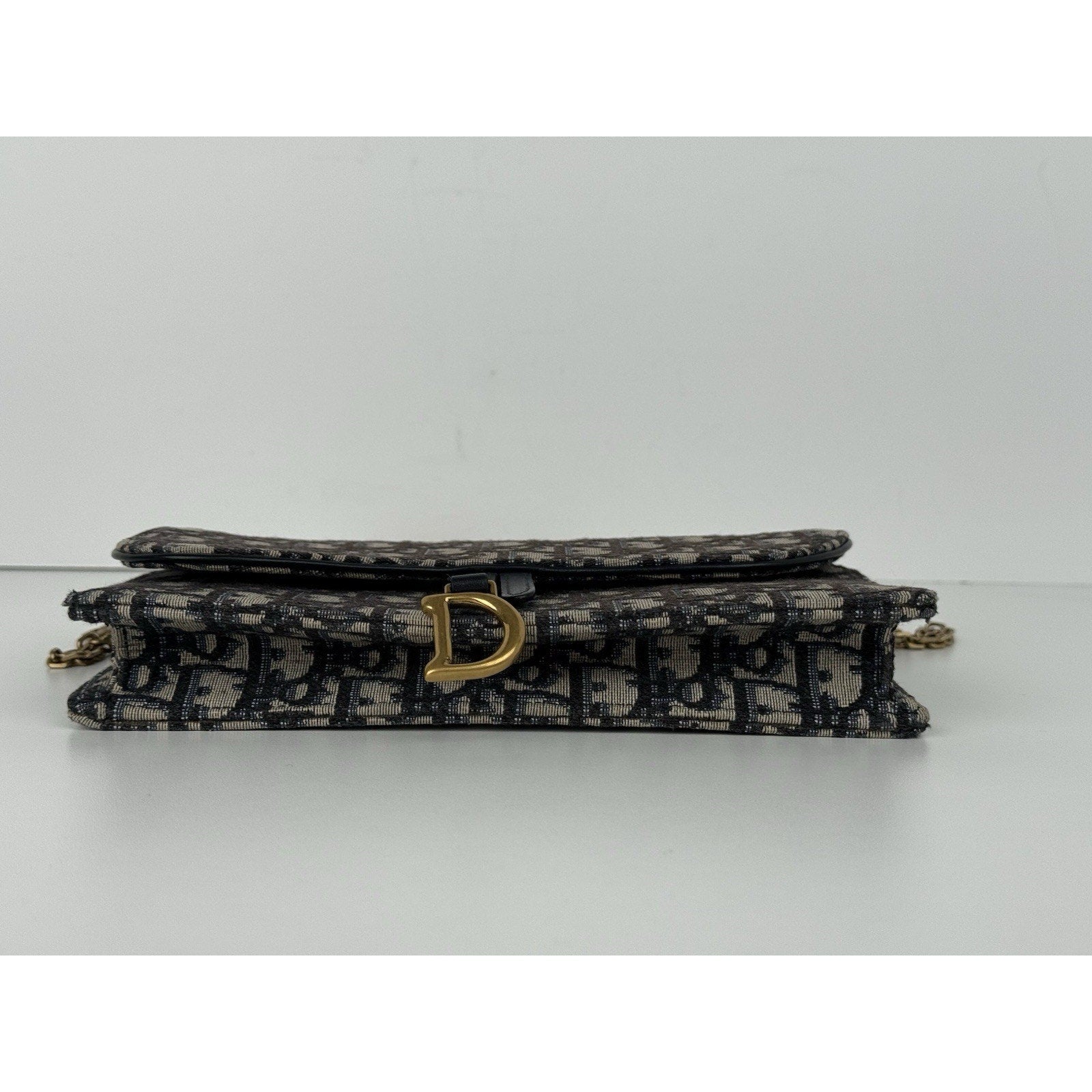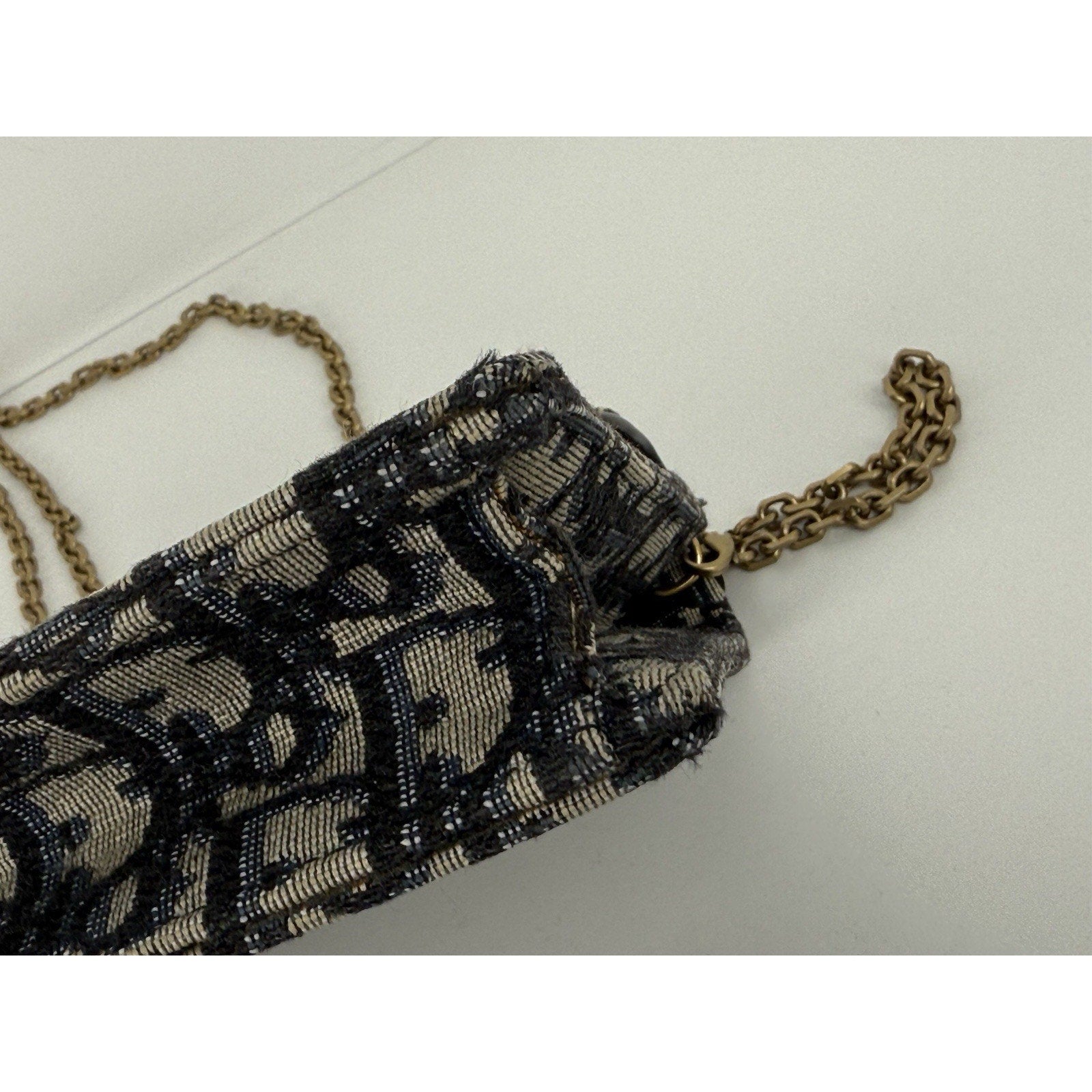 DIOR Blue Oblique Jacquard Medium Saddle Pouch with Chain – Canvas & Leather (Gently Used, Good Condition)