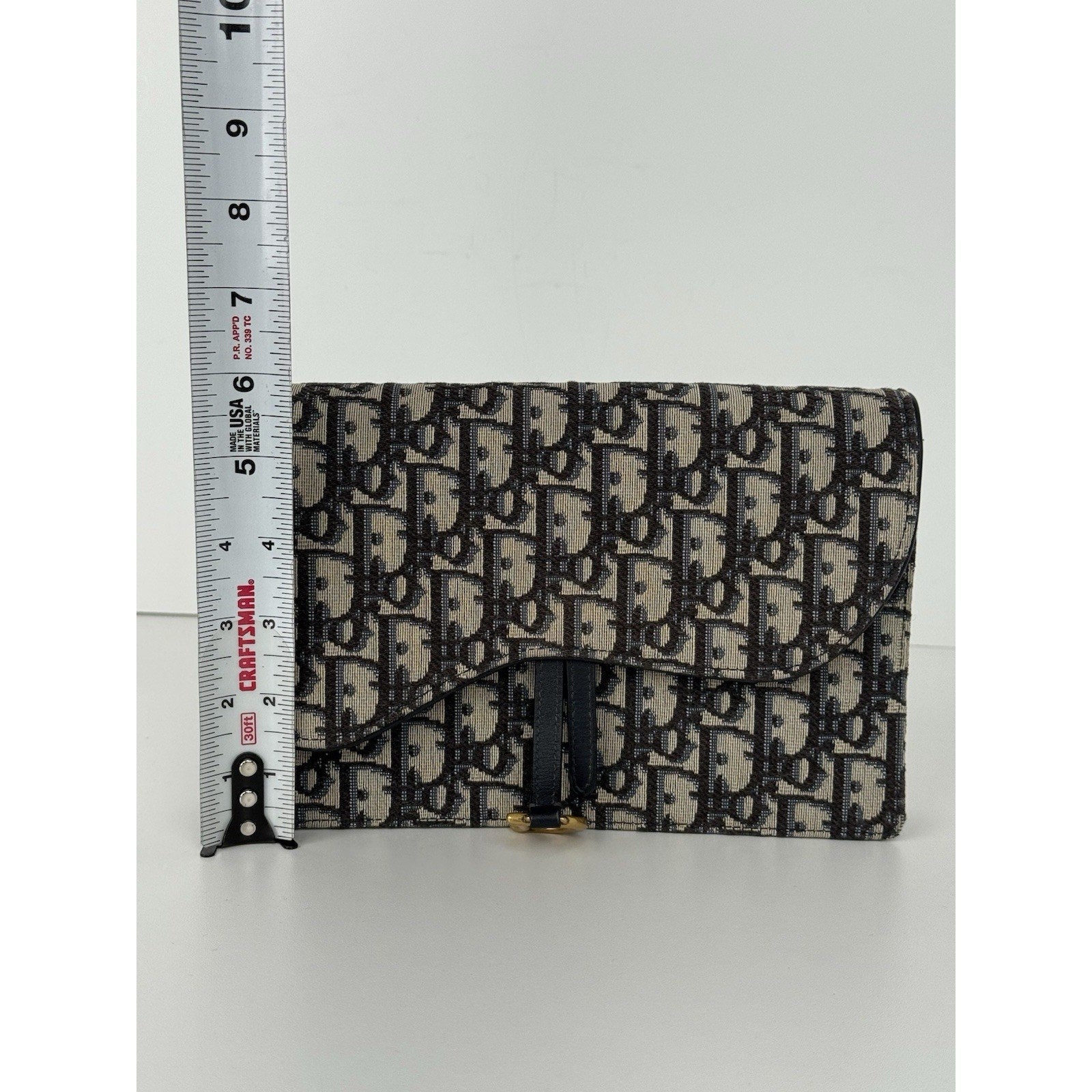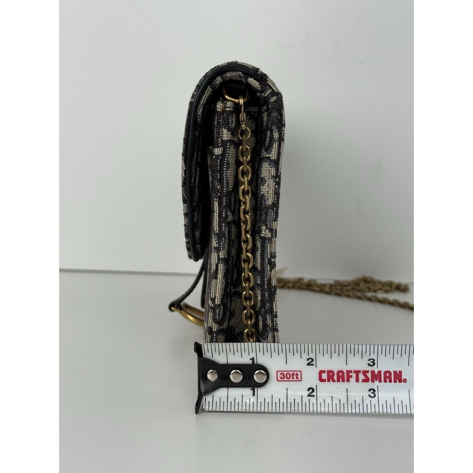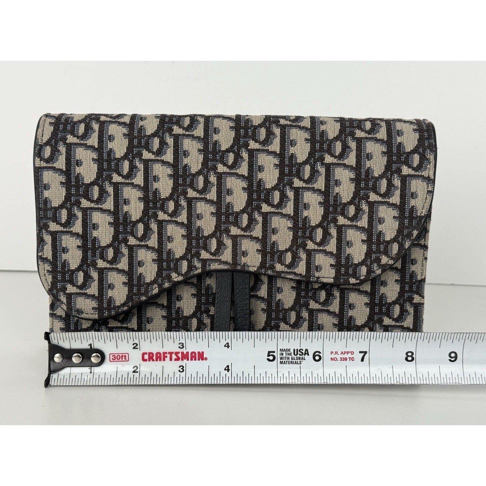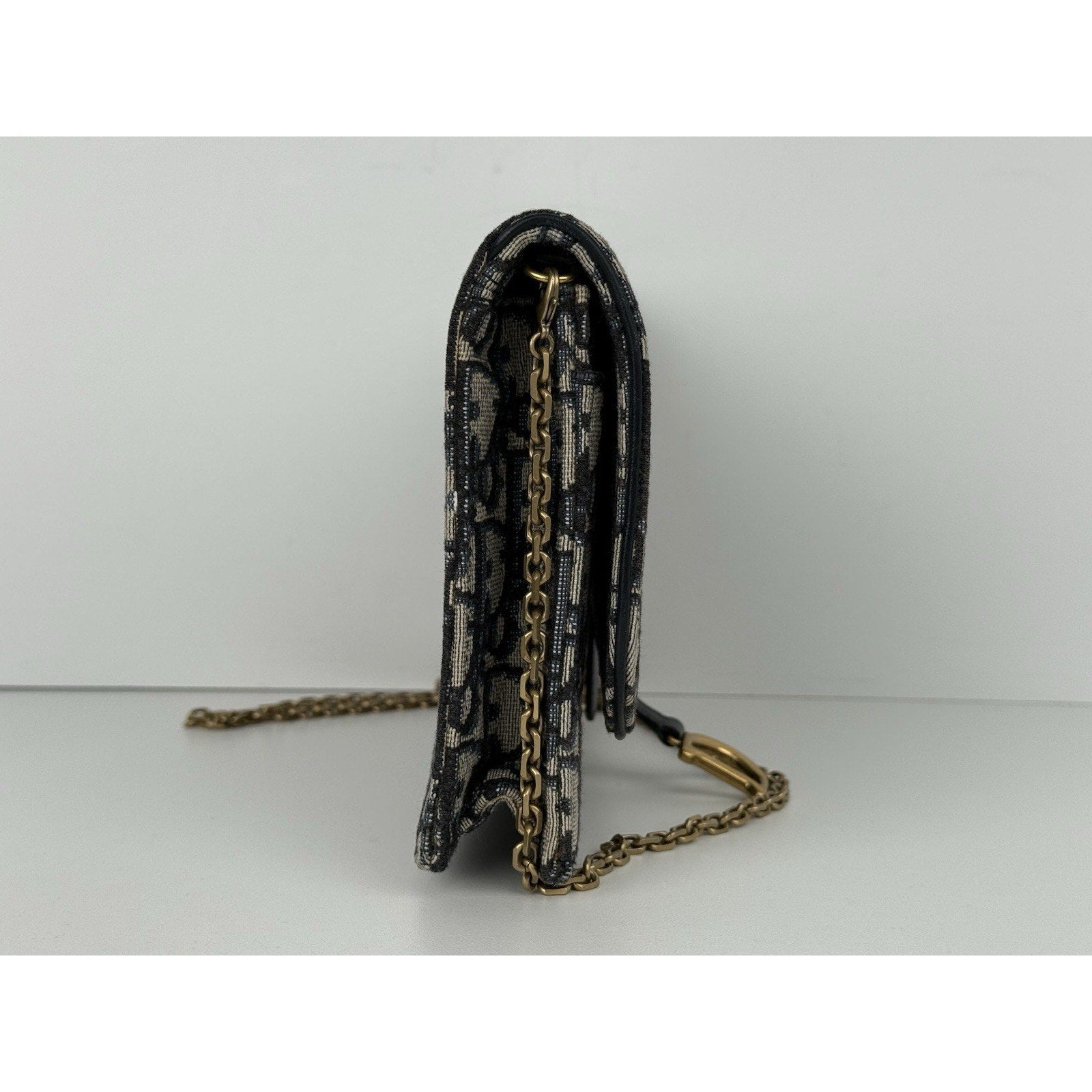 DIOR Blue Oblique Jacquard Medium Saddle Pouch with Chain – Canvas & Leather (Gently Used, Good Condition)
