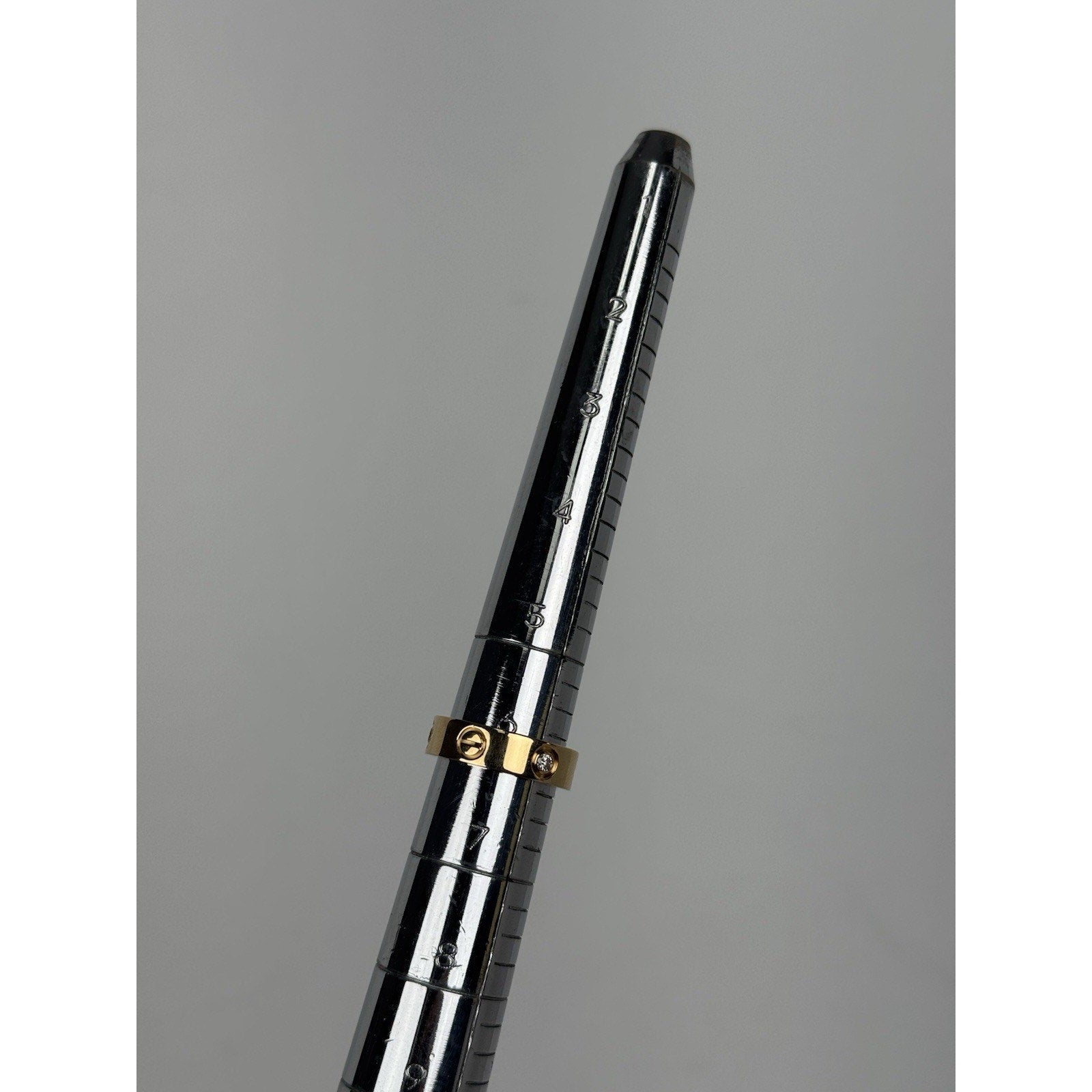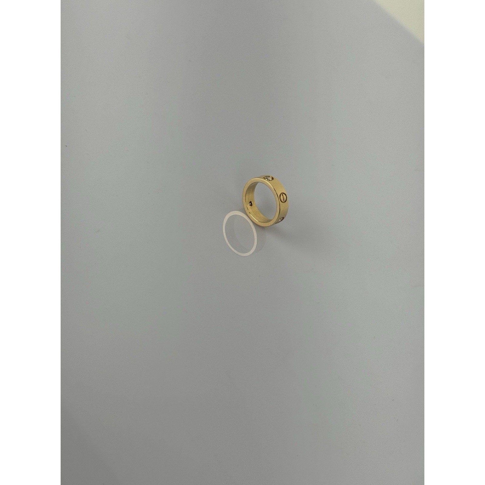 This Cartier Love Classic ring is crafted from rich 18K yellow gold (AU 750) and features three sparkling diamonds embedded in the iconic screw motif design. Though listed as gently used, the ring is in exceptional condition — shiny, clean, and free from visible scratches or stains. The diamonds add a refined elegance to this already timeless piece, catching the light beautifully and enhancing its luxurious presence.