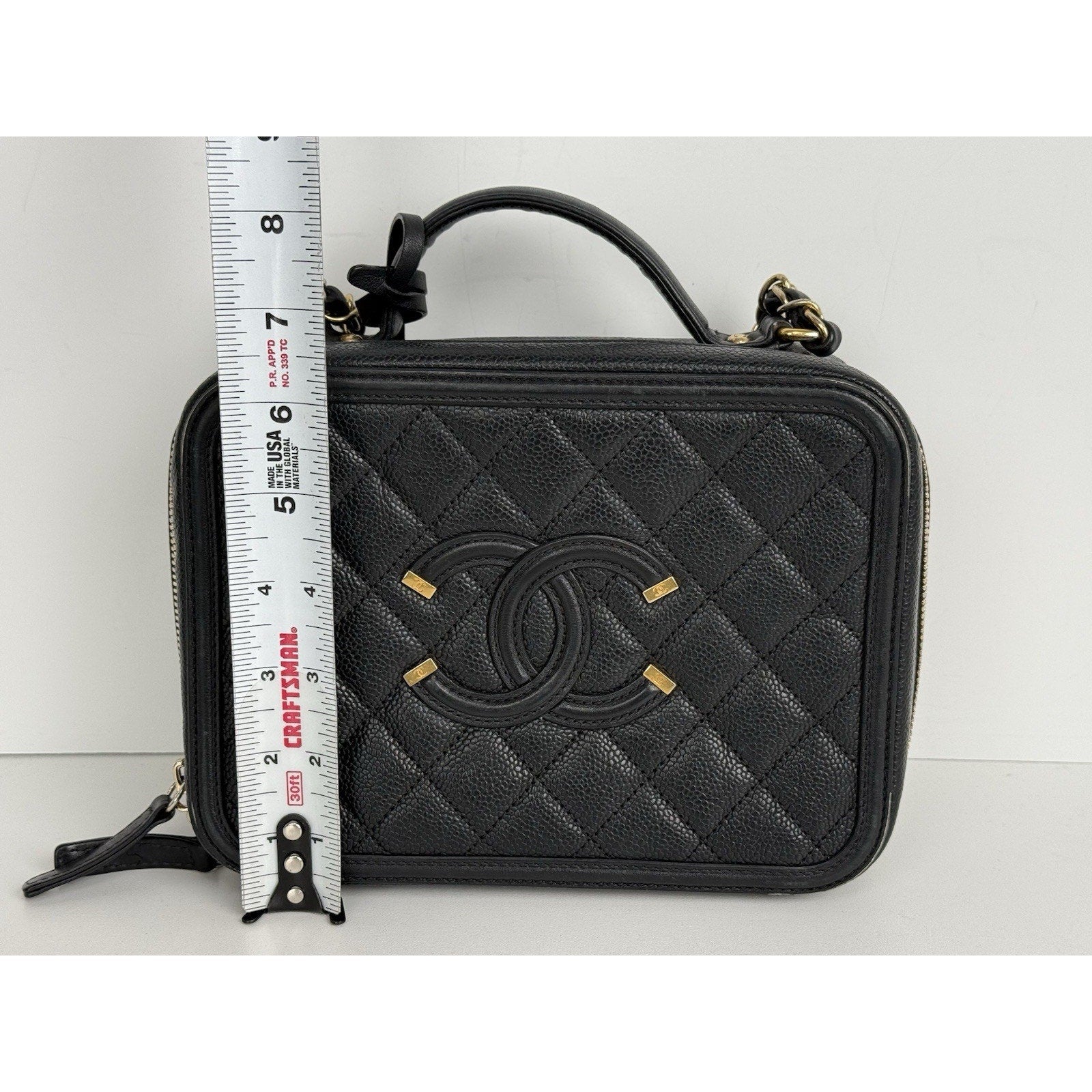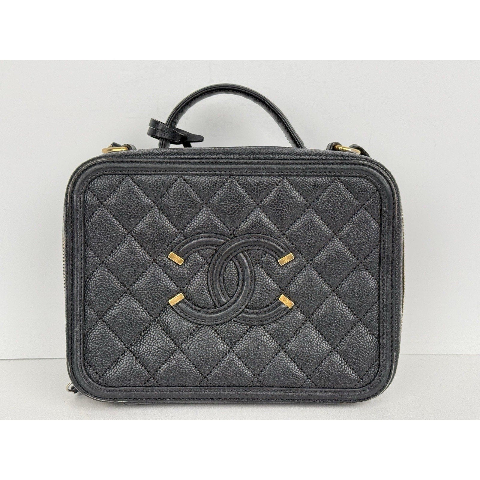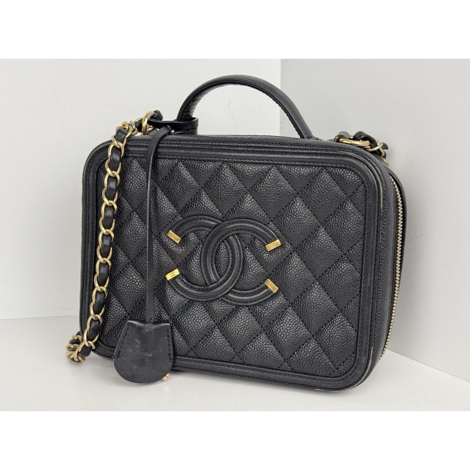 A timeless Chanel CC Filigree Vanity Case crafted from durable caviar leather, offering classic elegance with a touch of vintage charm.