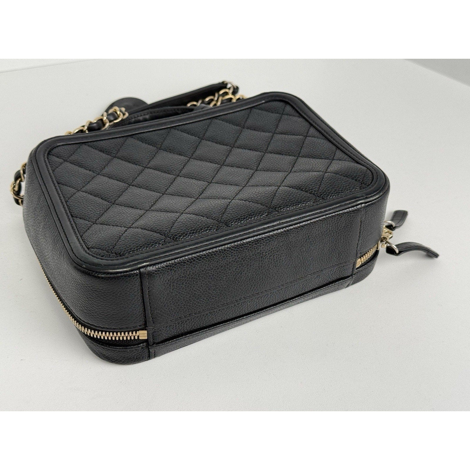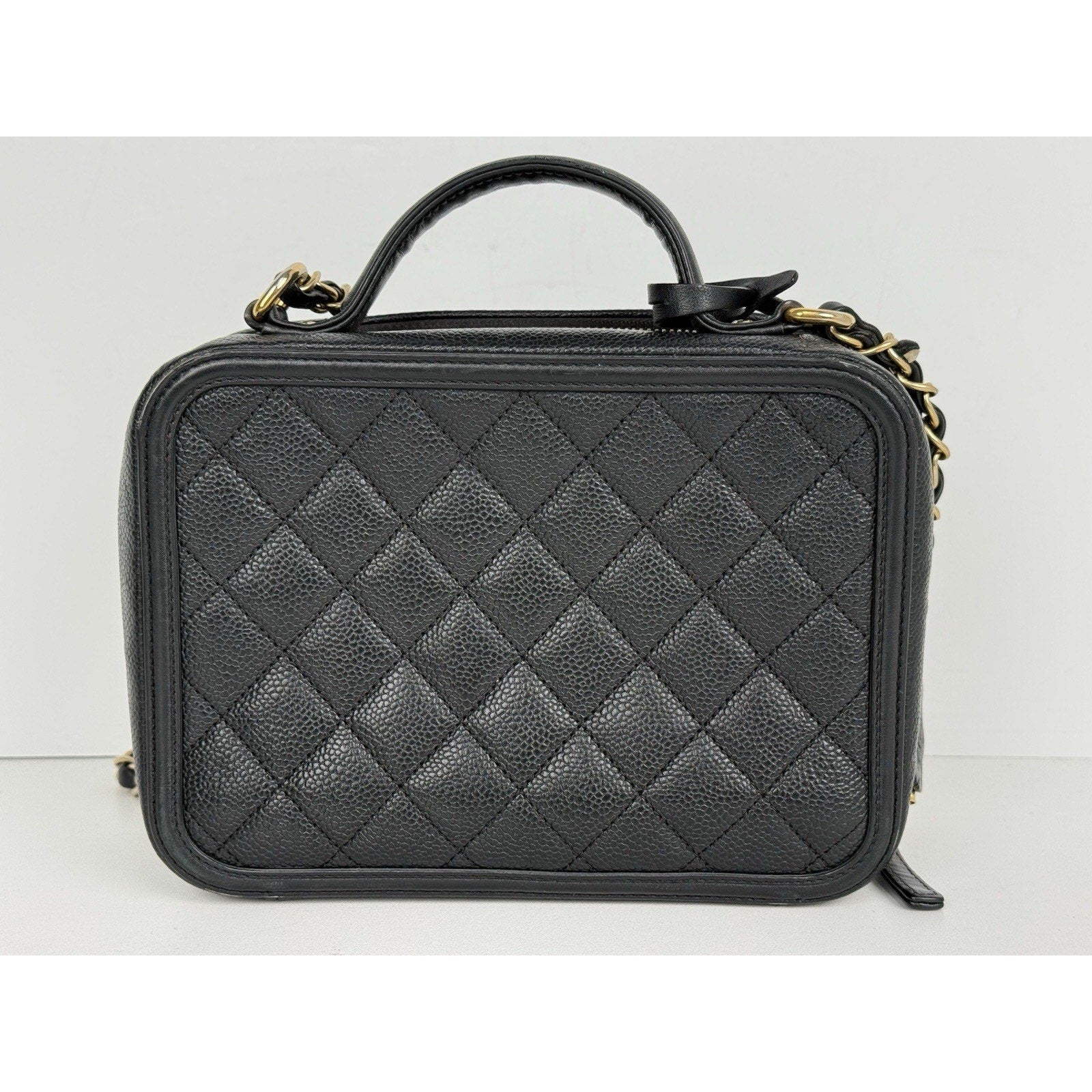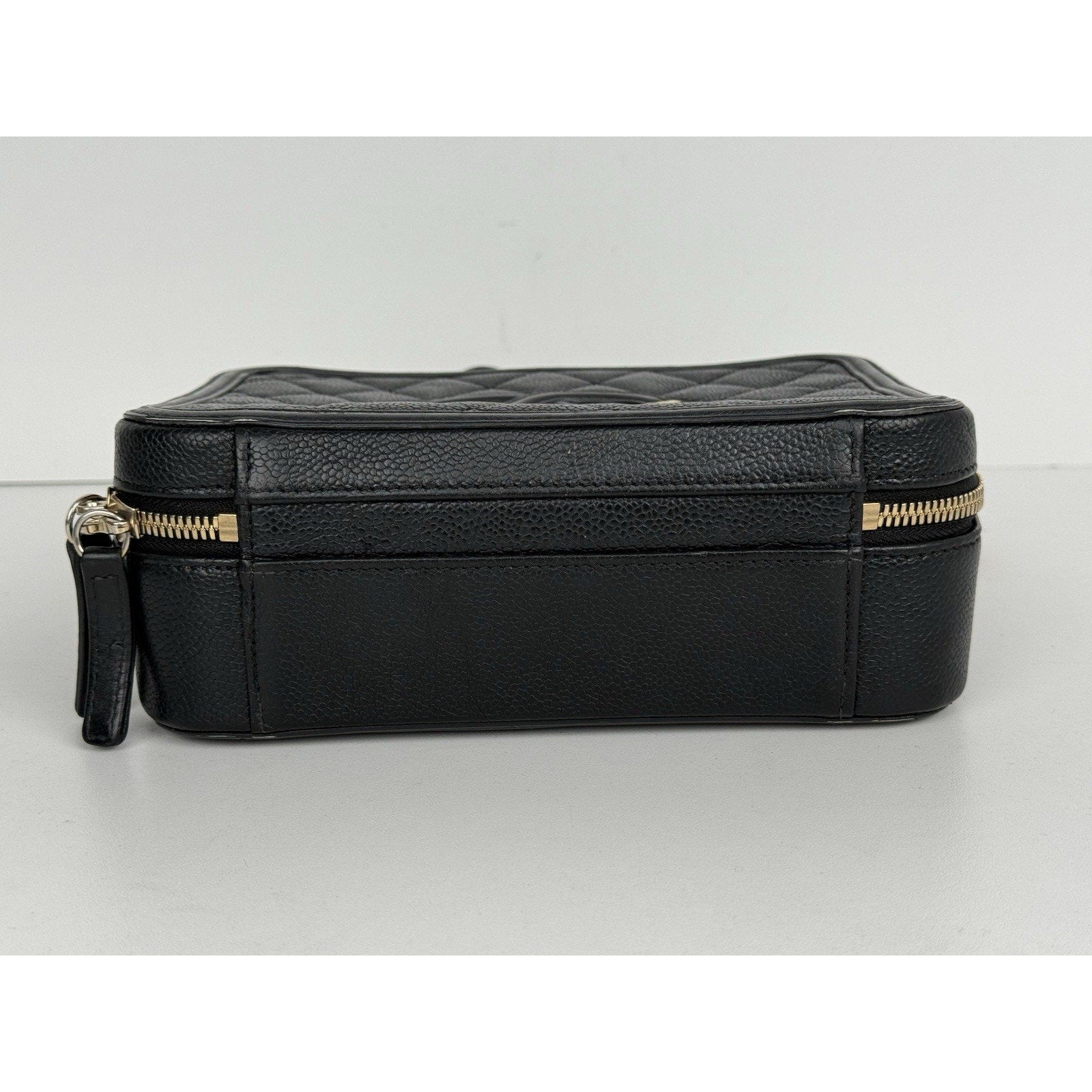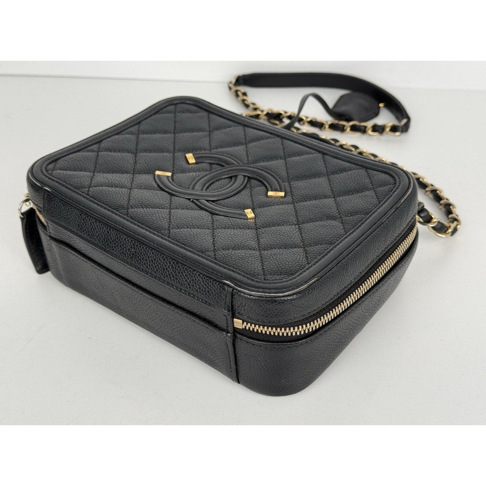 A timeless Chanel CC Filigree Vanity Case crafted from durable caviar leather, offering classic elegance with a touch of vintage charm.