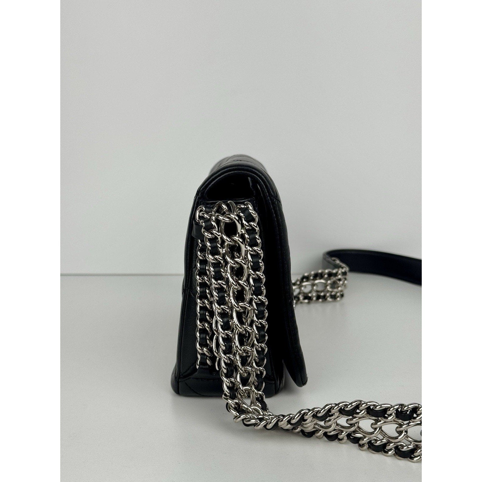 Exterior Condition: The black leather exterior is in good condition, maintaining a smooth texture and elegant appearance. It is free of scratches, scuffs, and stains, with only a few minor scuffs visible on the corners upon close inspection. The silver hardware remains bright and shiny, adding a refined touch to the bag’s look.