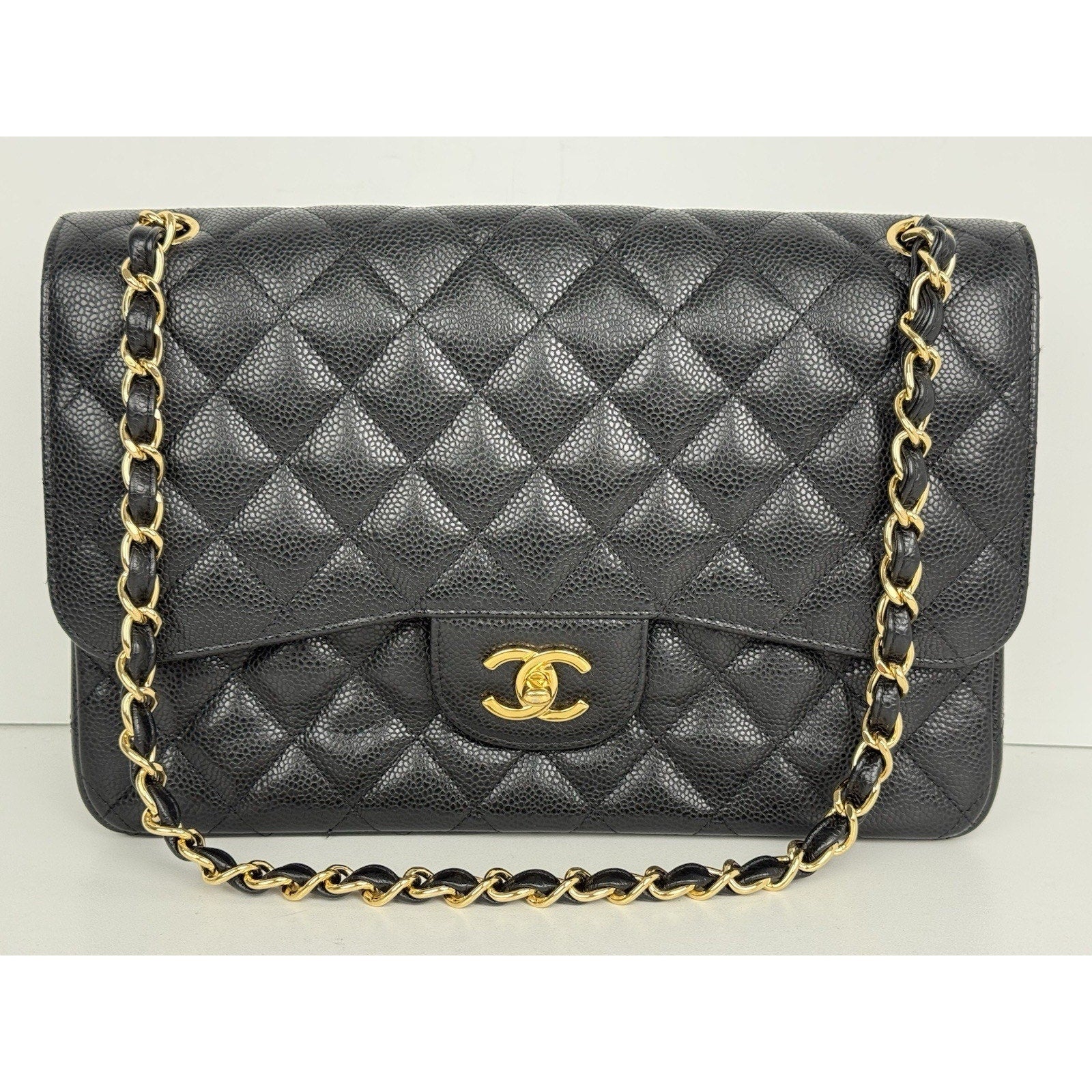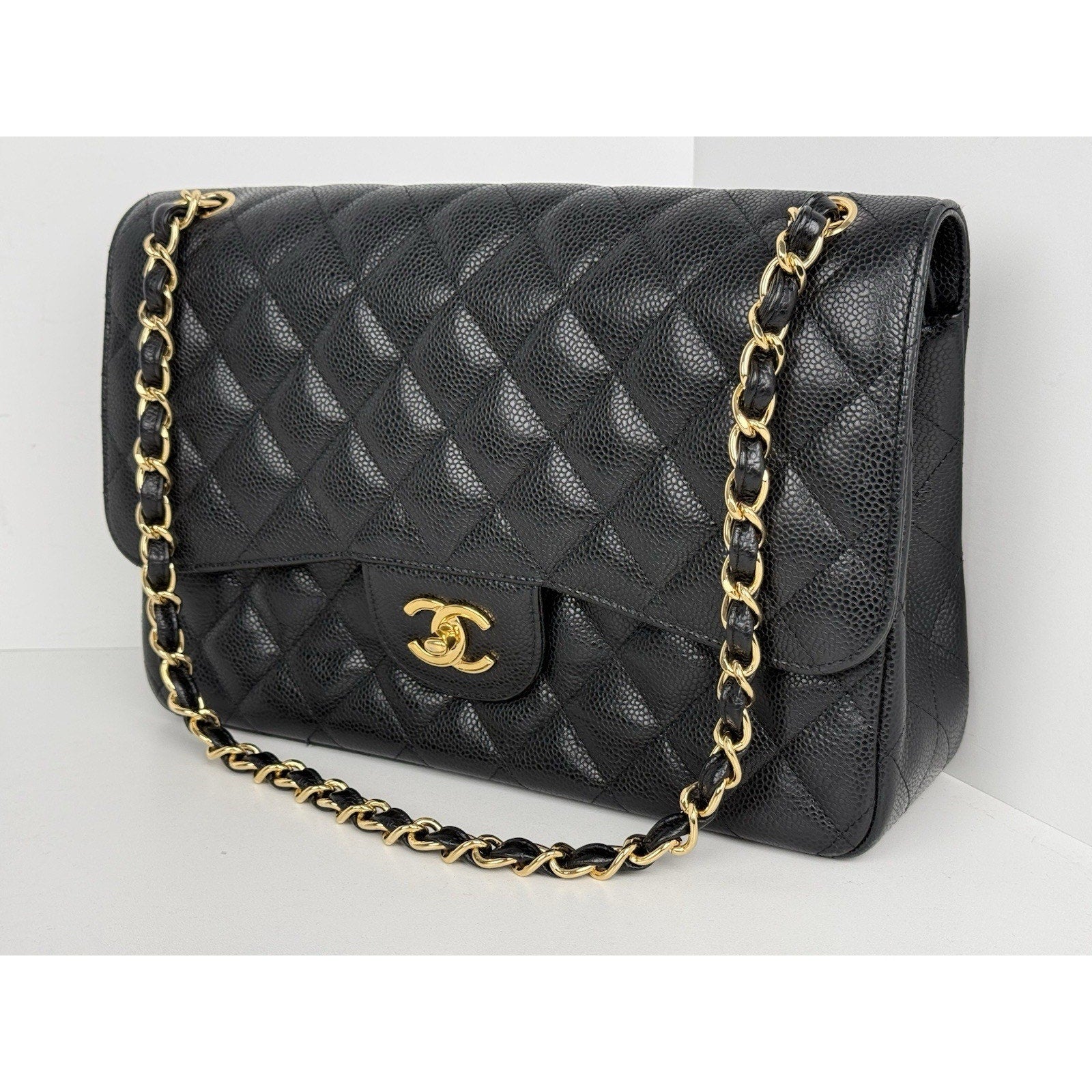 Chanel Classic Caviar Jumbo Double Flap Bag Black with Gold Hardware B-2