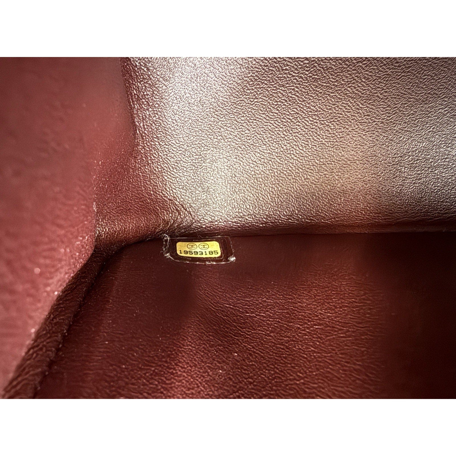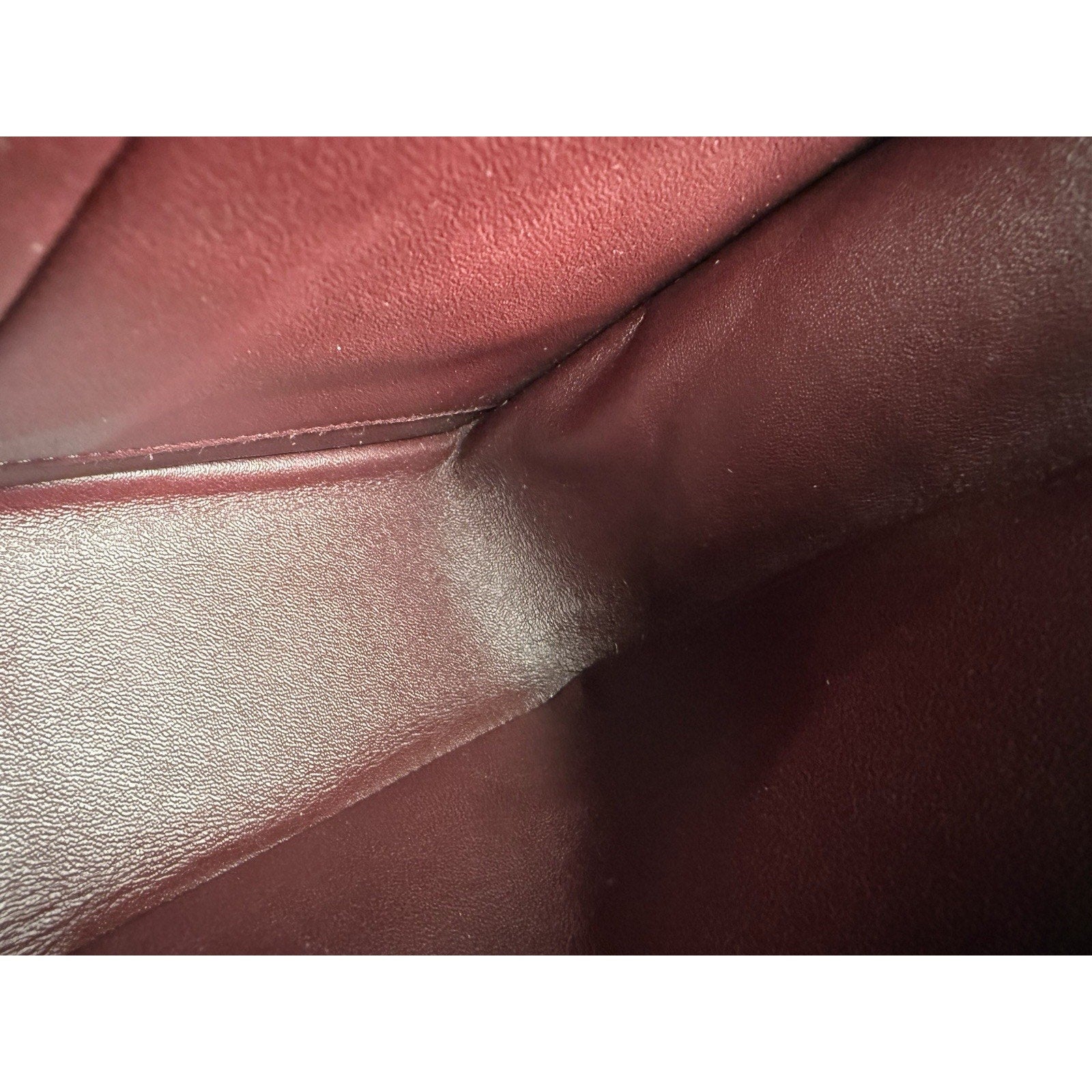 • Interior condition: Burgundy leather lining has minor whitish stains that are only visible upon close inspection.