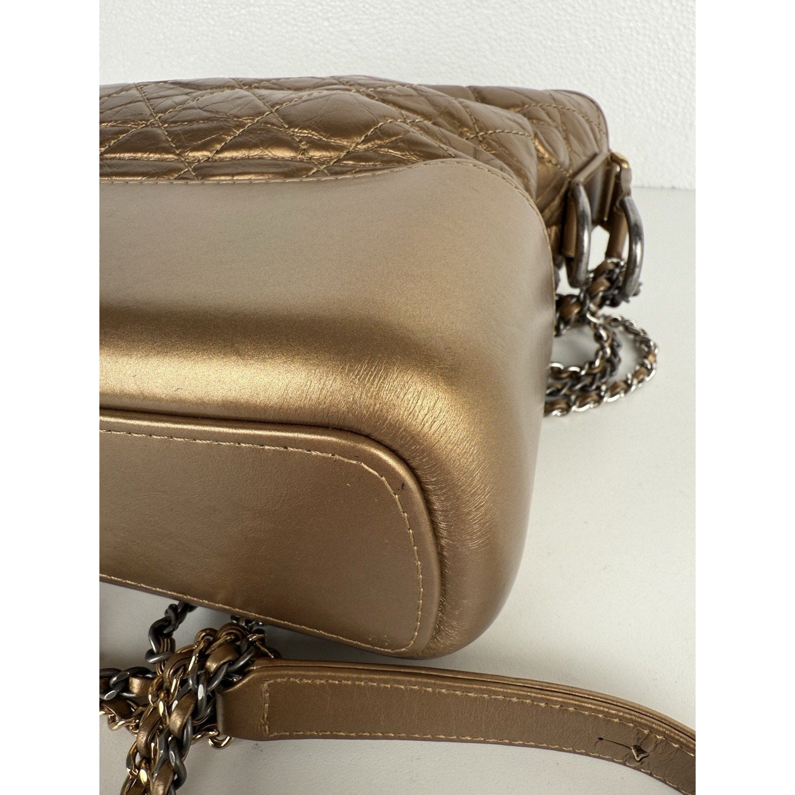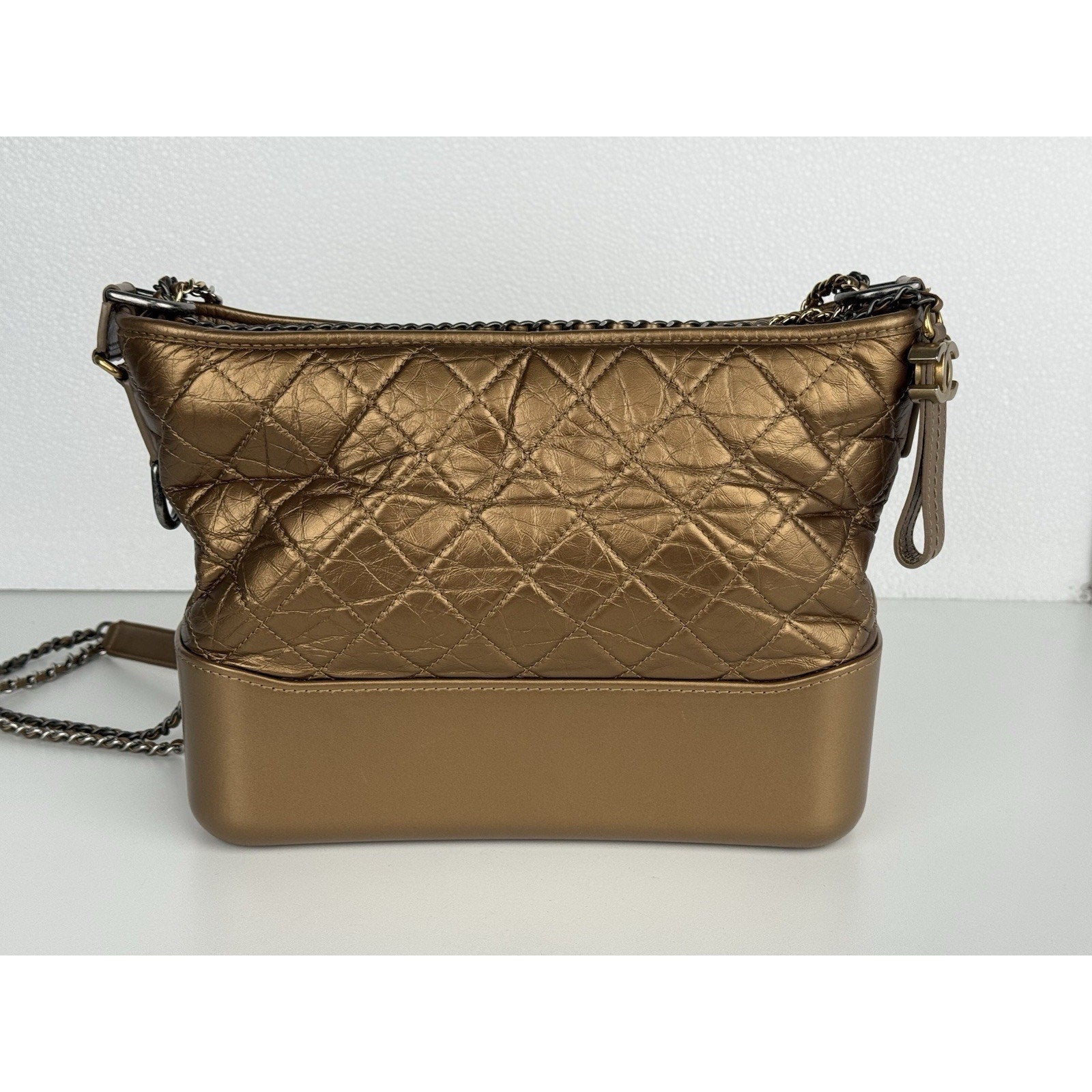 CHANEL Gabrielle Hobo Bag Quilted Gold Calfskin Gold Silver Hardware