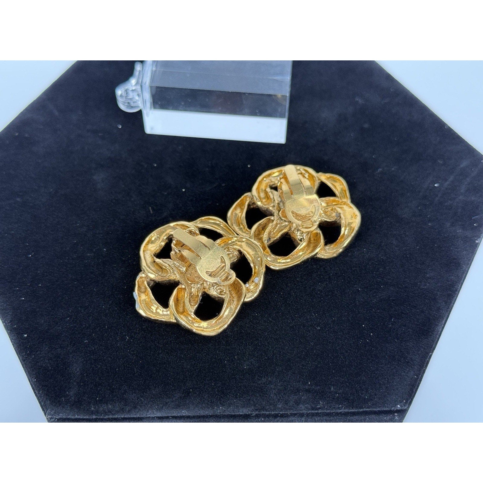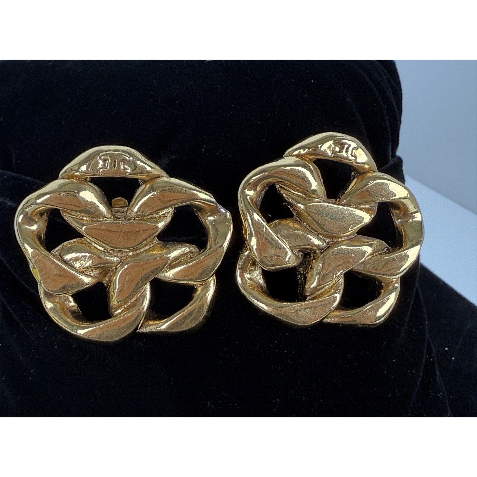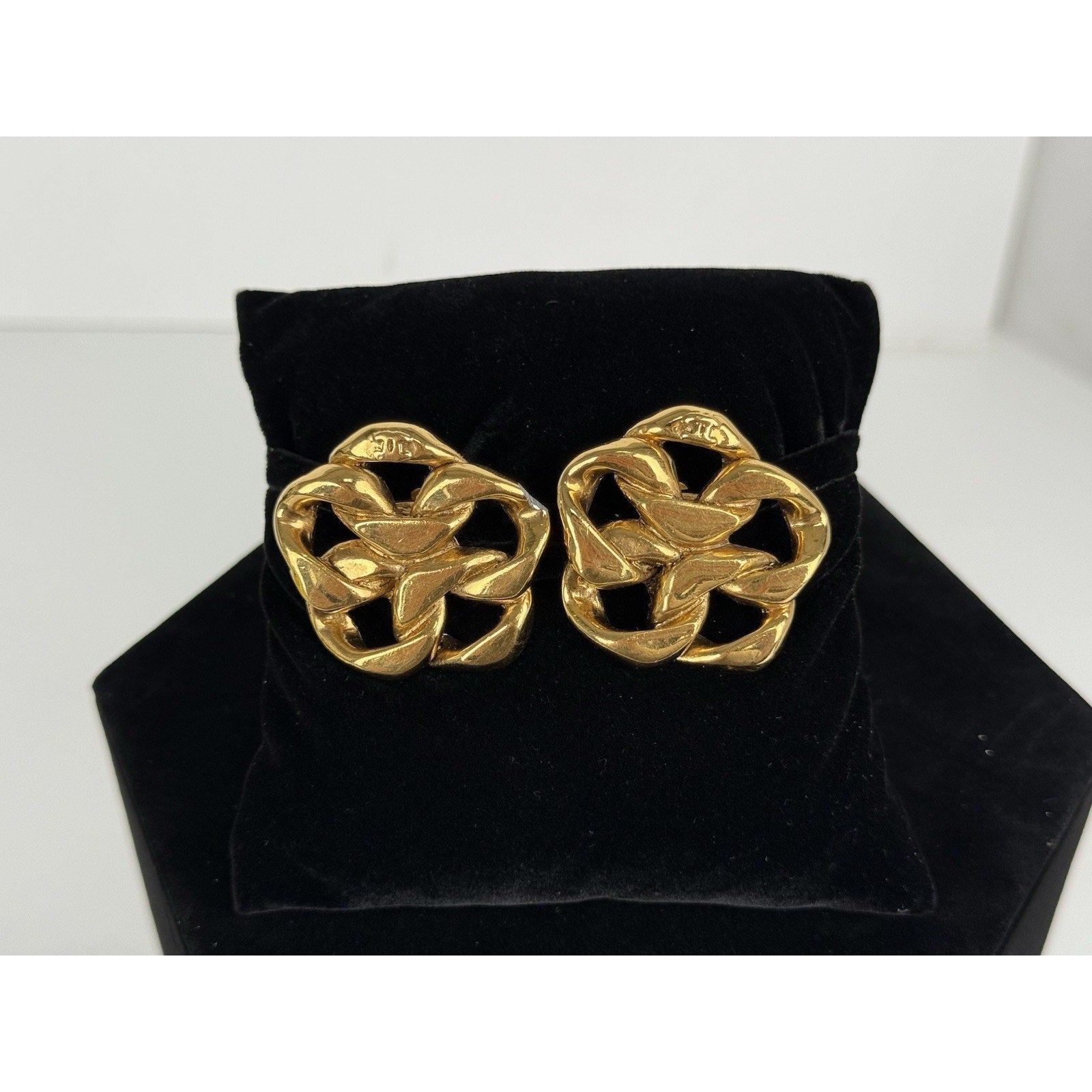 Chanel Gold Chain Flower Clip on Earrings 1980s
