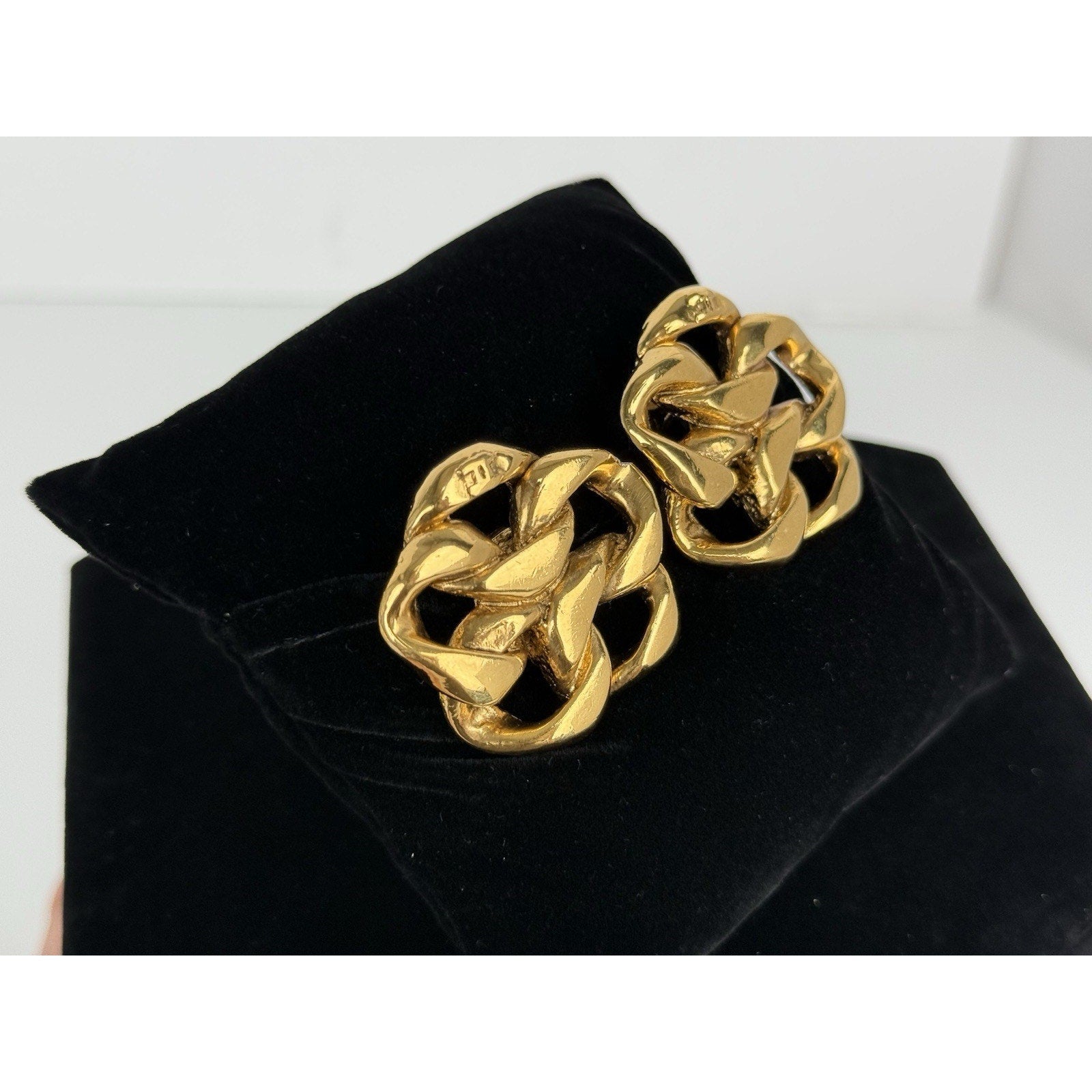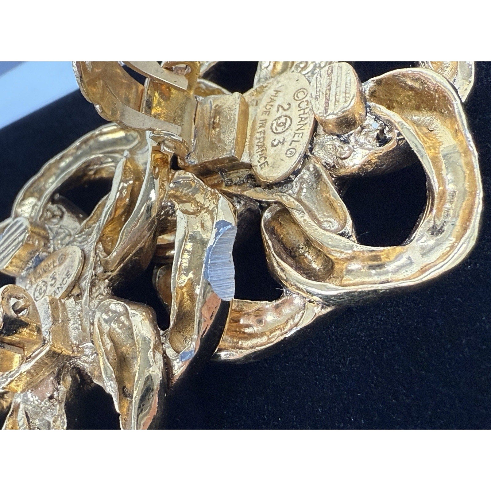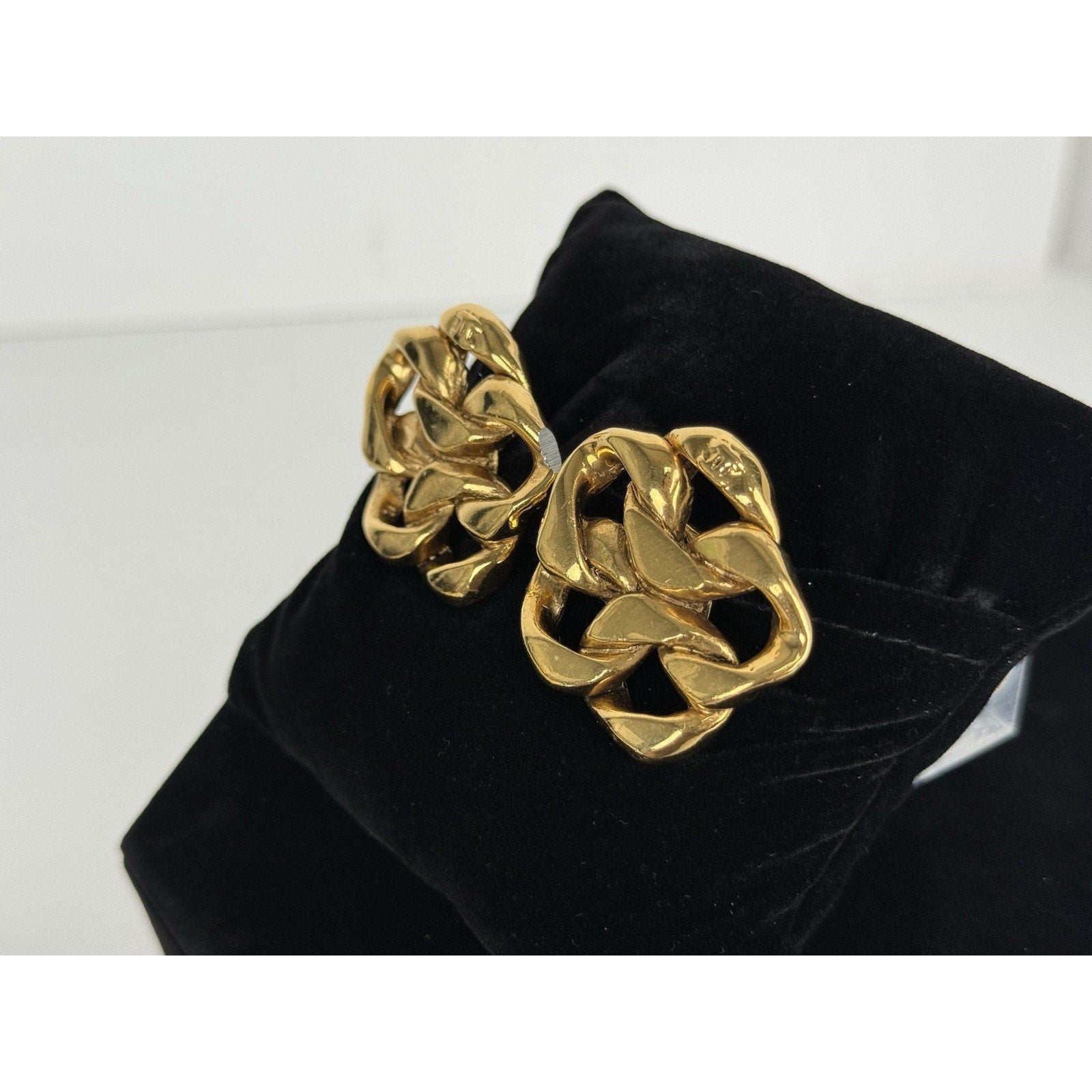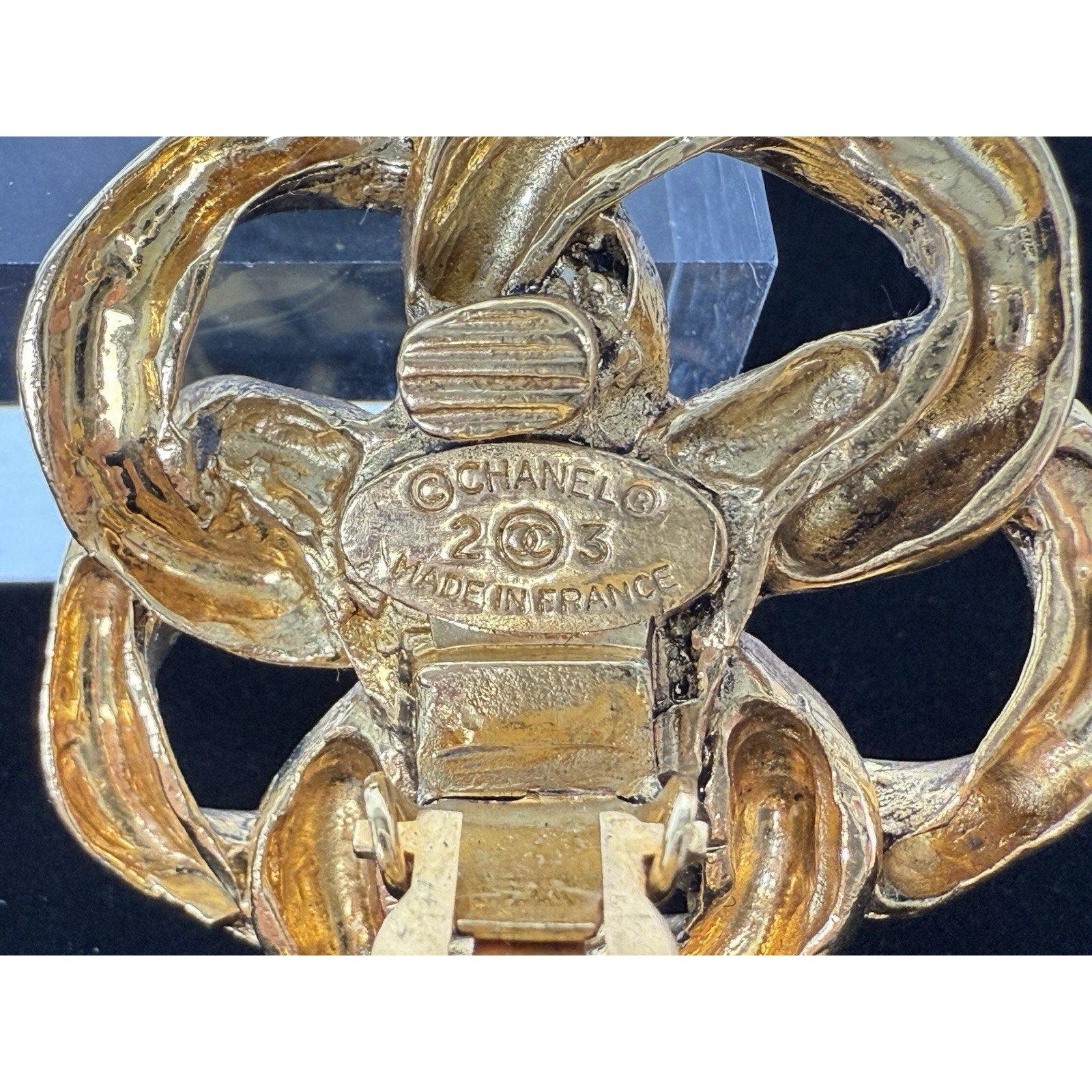 Chanel Gold Chain Flower Clip on Earrings 1980s