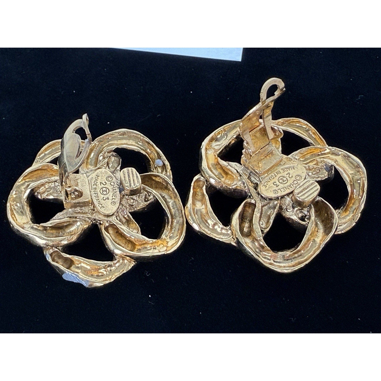Made of yellow gold plated metal and featuring round flower shapes, these earrings exude elegance and sophistication. With a clip-on closure, they are easy to wear and comfortable for all-day events. Designed in France by the iconic Chanel brand, these earrings are a statement piece that adds a touch of glamour to any ensemble.